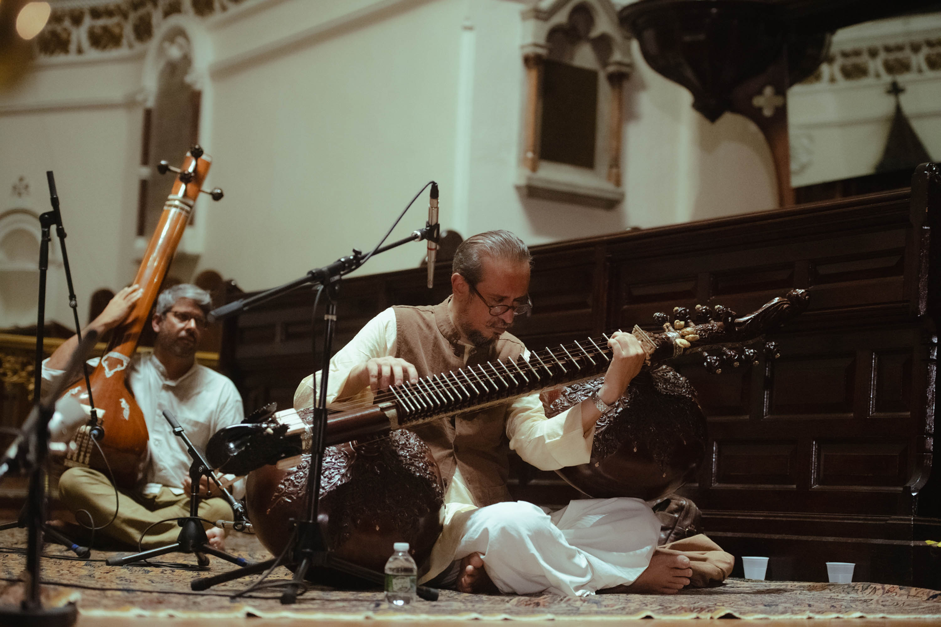 Ustad Mohi Bahauddin Dagar is widely recognized as the most virtuosic performer of the rudra veena living today and a torchbearer of his family’s dhrupad lineage dating back to the sixteenth century. Bahauddin is the son of the illustrious rudra veena player and teacher Ustad Zia Mohiuddin Dagar, who alongside his brother, renowned vocalist Ustad Zia Fariduddin Dagar, sparked a revival of the instrument while changing the very nature of its use in performance. Since making his formal debut as a musician in 1990, Bahauddin has become acclaimed for his highly responsive, contemplative playing style; prayerful and expansive sound; and commitment to exploring and advancing dhrupad through innovations in instrument construction and technique.