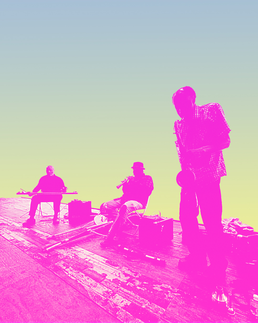 While each member is known as a virtuosic player on their primary instrument – Carter on saxophone, Cooper-Moore on piano and Parker on bass – they all function as multi-instrumentalists in this group, and are practically an orchestra unto themselves. Employing Carter’s battery of woodwinds and horns, Parker’s bass, n’goni, shennai and other instruments from Africa and Asia, and Cooper-Moore’s homemade Ashimba, fretless banjo and diddley bow – instruments deeply entangled with the history of Africans in the Americas – the trio bring Black creative music into sympathetic vibration with traditions from around the globe, to “really move towards non-European concepts,” as Parker has stated. “We’re playing Black Chamber Folk Music. That means eventually having a string quartet with all African instruments, or African and Indian instruments. As long as there’s strings and it’s a quartet it doesn’t have to be viola, violin, cello and bass.”